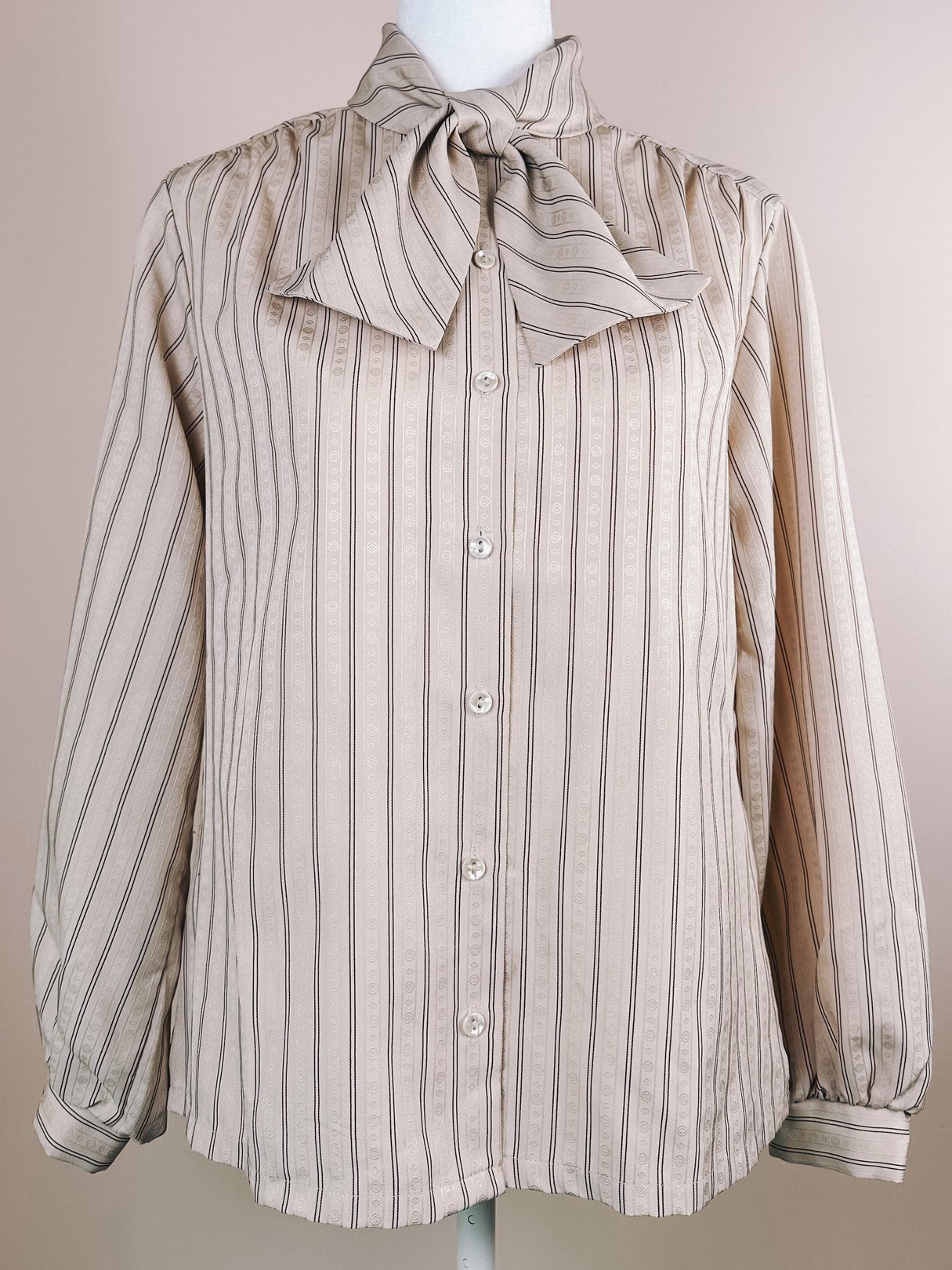 I love all things bows and this blouse seals the deal. The delicate circle accents in the print add an extra layer of detail. Light and easy to wear.