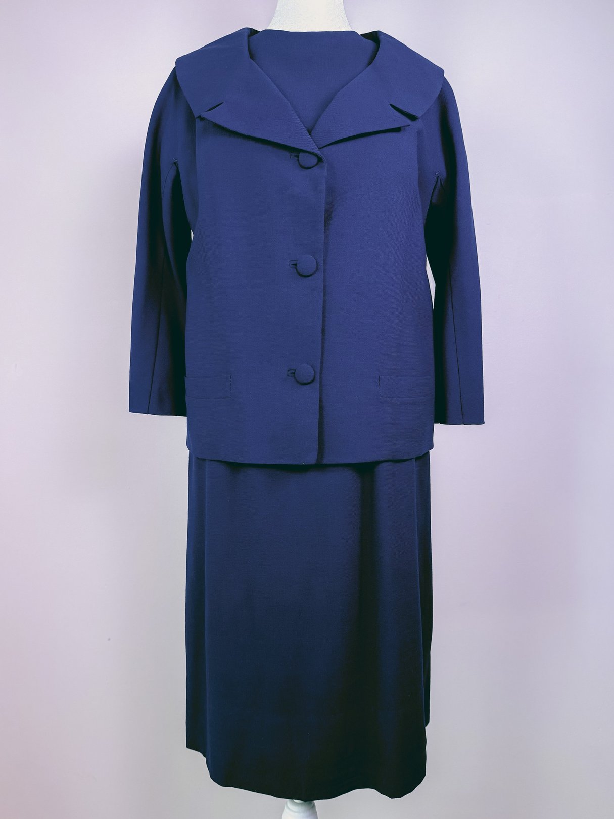 A refined 2-piece set that feels at once classic and cosmopolitan. The silhouette recalls the elegance of the 1950s and 60s, with a tailored pencil dress and coordinating jacket lined in matching navy. Cloth-covered buttons cascade down the back of the dress, offering a subtle surprise detail, while the jacket’s three-quarter sleeves and softly structured lapels complete the look. This set was named for Las Ramblas, the city’s most iconic avenue, where timeless style meets modern energy.