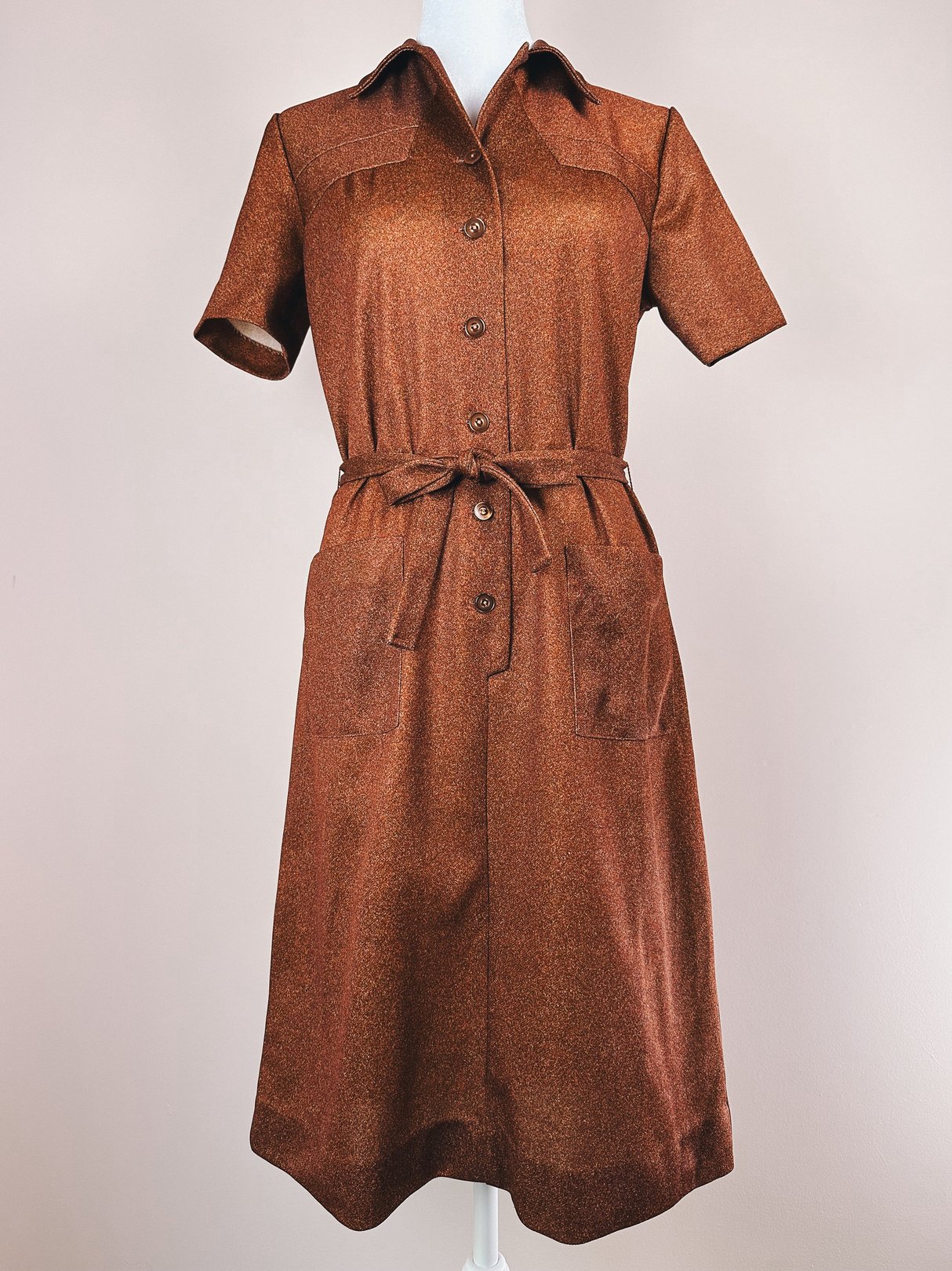 "Made to Wear Anywhere" was their trademark quote and it's true! The truest polyester speckled print with two front hip waist pockets for your trinkets and pens. Matching belt too.
